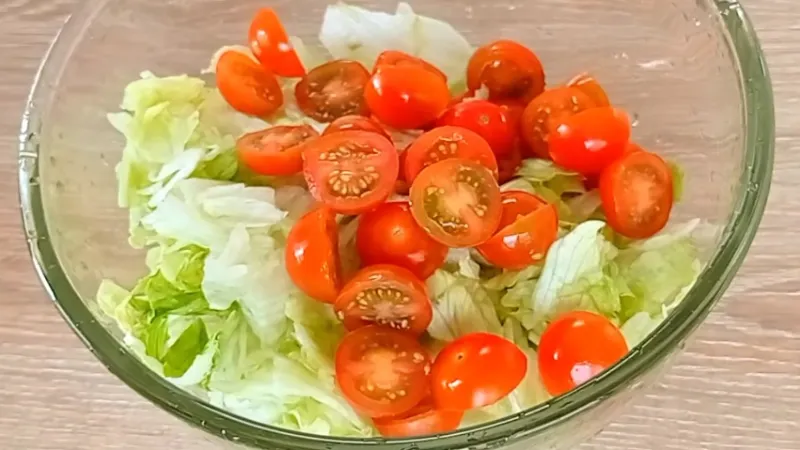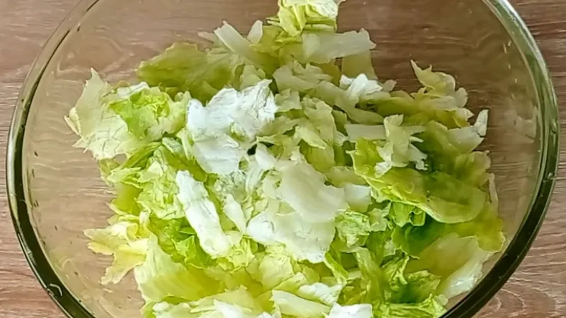 Lava bien las hojas de lechuga bajo el grifo, escúrrelas y sécalas con una centrifugadora o con papel de cocina. Córtalas con la mano, nunca con cuchillo, para evitar que se oxiden y se amarguen.